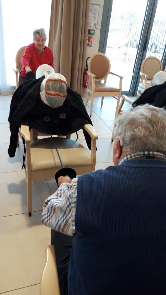 Lundi matin un maître d'armes du club d'escrime de Cesson est venu faire découvrir aux résidents l'escrime d'une manière étonnante et surtout adaptée à tous. Une belle découverte car cette discipline réunit tous les critères de motricité, concentration, et mémorisation.