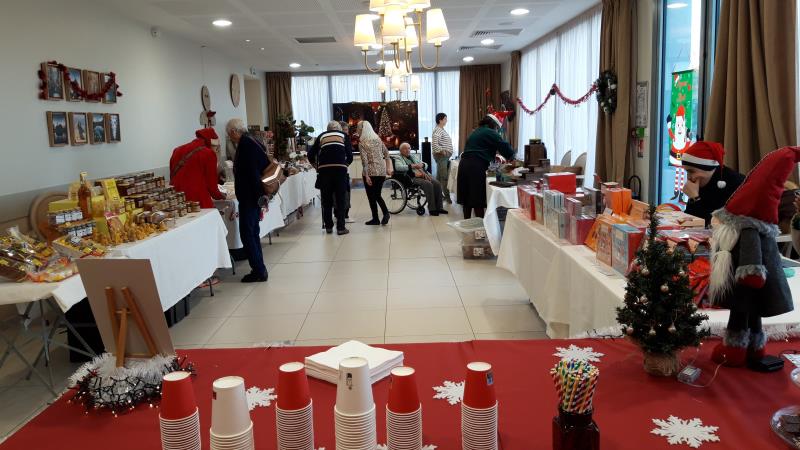 Ce fût une réussite mardi après-midi pour notre premier marché de Noël à la Résidence ; familles et résidents ont pu faire quelques petits achats pour les fêtes grâce aux 6 exposants présents qui nous ont proposé un large choix de produits : miel, pain d'épices, savons, produits de soin, thé, biscuits, chocolats, bijoux, sacs et accessoires faits main. Alors rendez-vous l'année prochaine !!