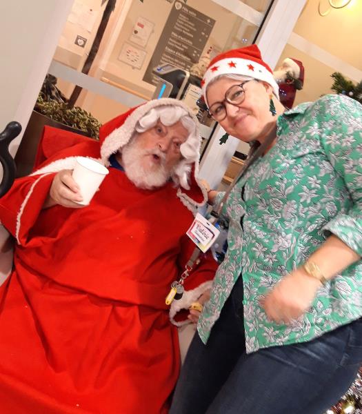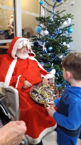 Et enfin le moment tant attendu de tous : l’arrivée du Père Noël, qui a pris le temps d’échanger quelques mots et de distribuer des papillottes. Cet après-midi laissera de merveilleux souvenirs à tout le monde, aux résidents, à leur proches et aux équipes.